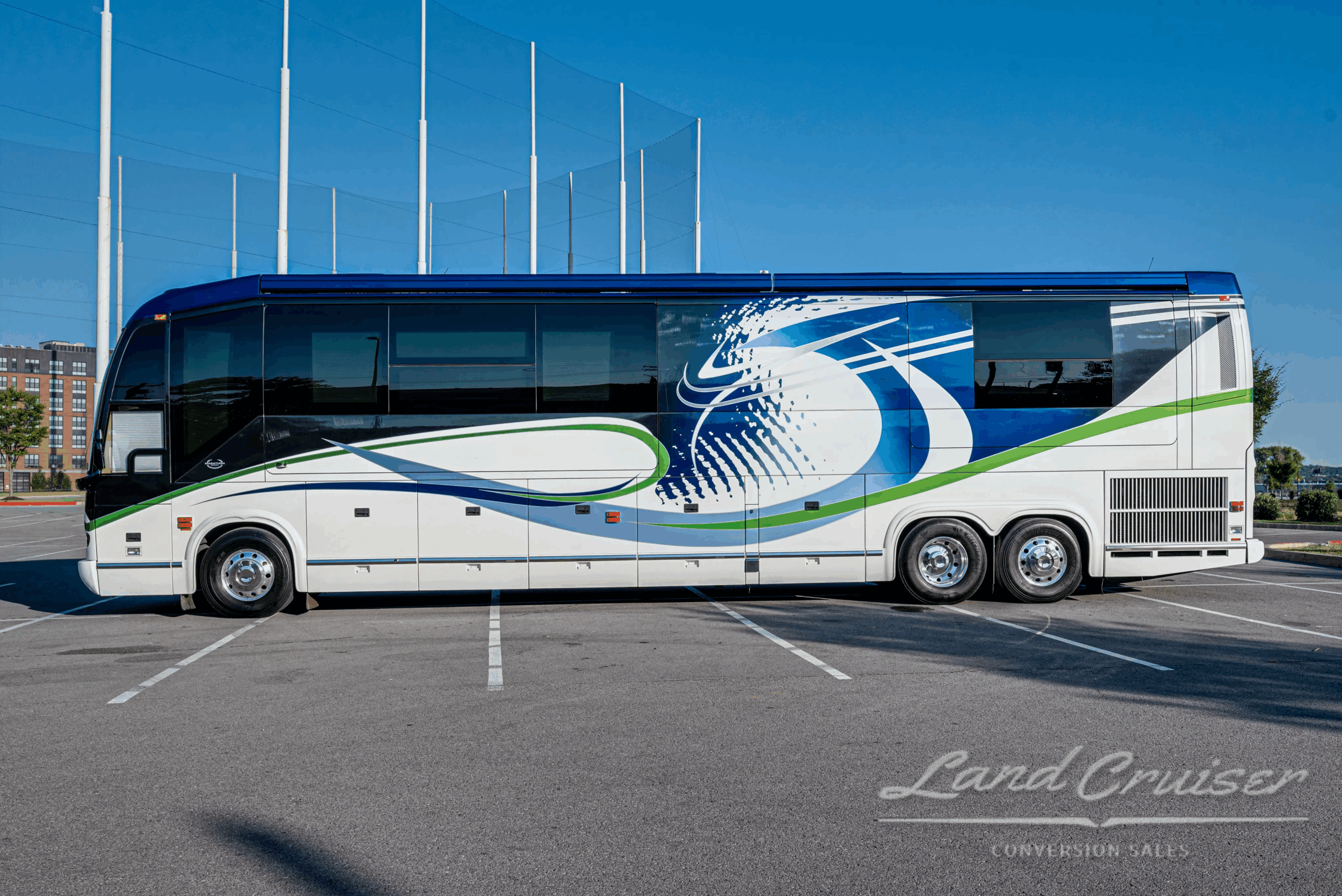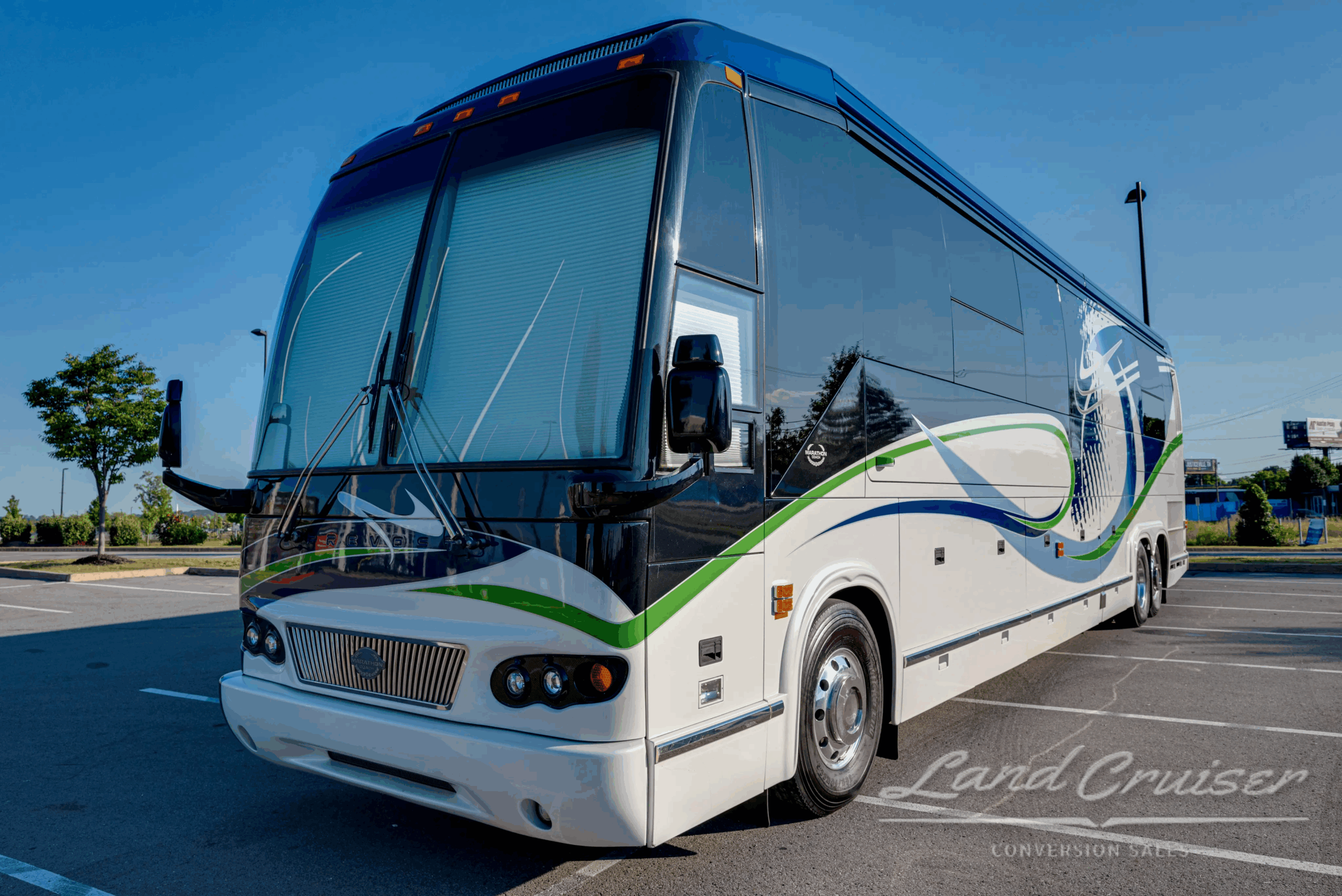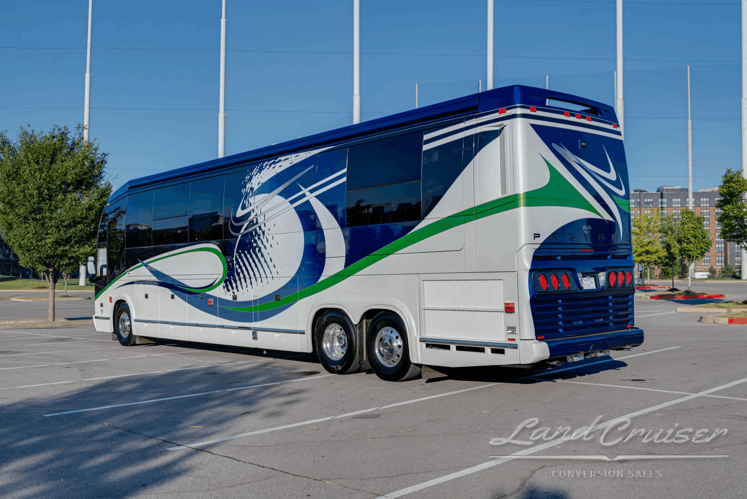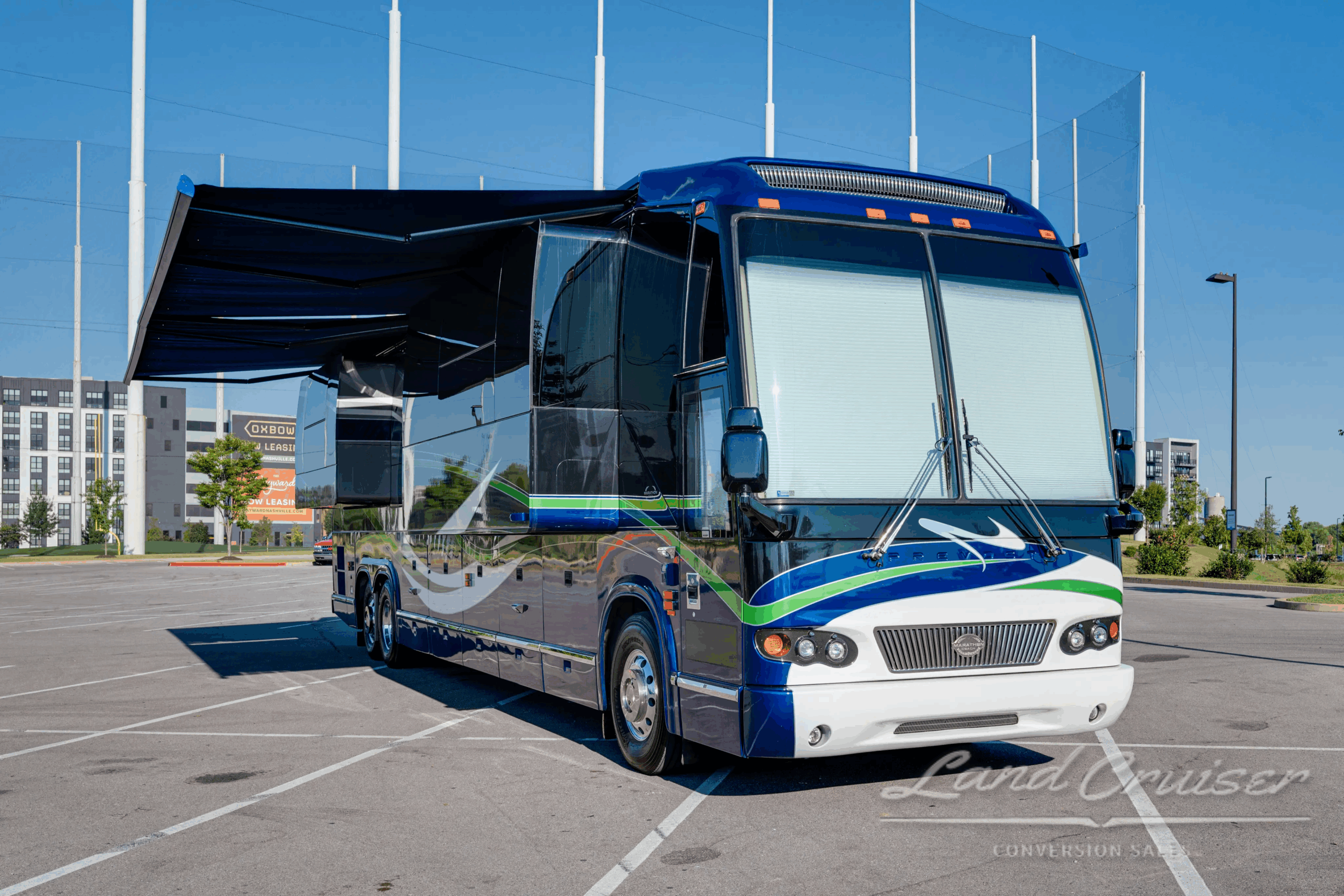 The 2009 Prevost H345 Marathon Coach 1174 is a luxury quad-slide motorhome conversion built for comfort, independence, and extended travel. Powered by a 14.0L Series 60 Detroit engine and featuring Marathon’s Jefferson H4-J floor plan, this premium coach combines elegant residential styling with high-end touring capability. Inside, the layout offers a king-sized rear suite, mid-walk-in wardrobe, and full-sized stacked washer/dryer—making it ideal for full-time living or long-haul travel. A beautifully appointed galley with premium appliances, spacious living area, and multiple Crestron-controlled AV zones create a refined onboard experience.